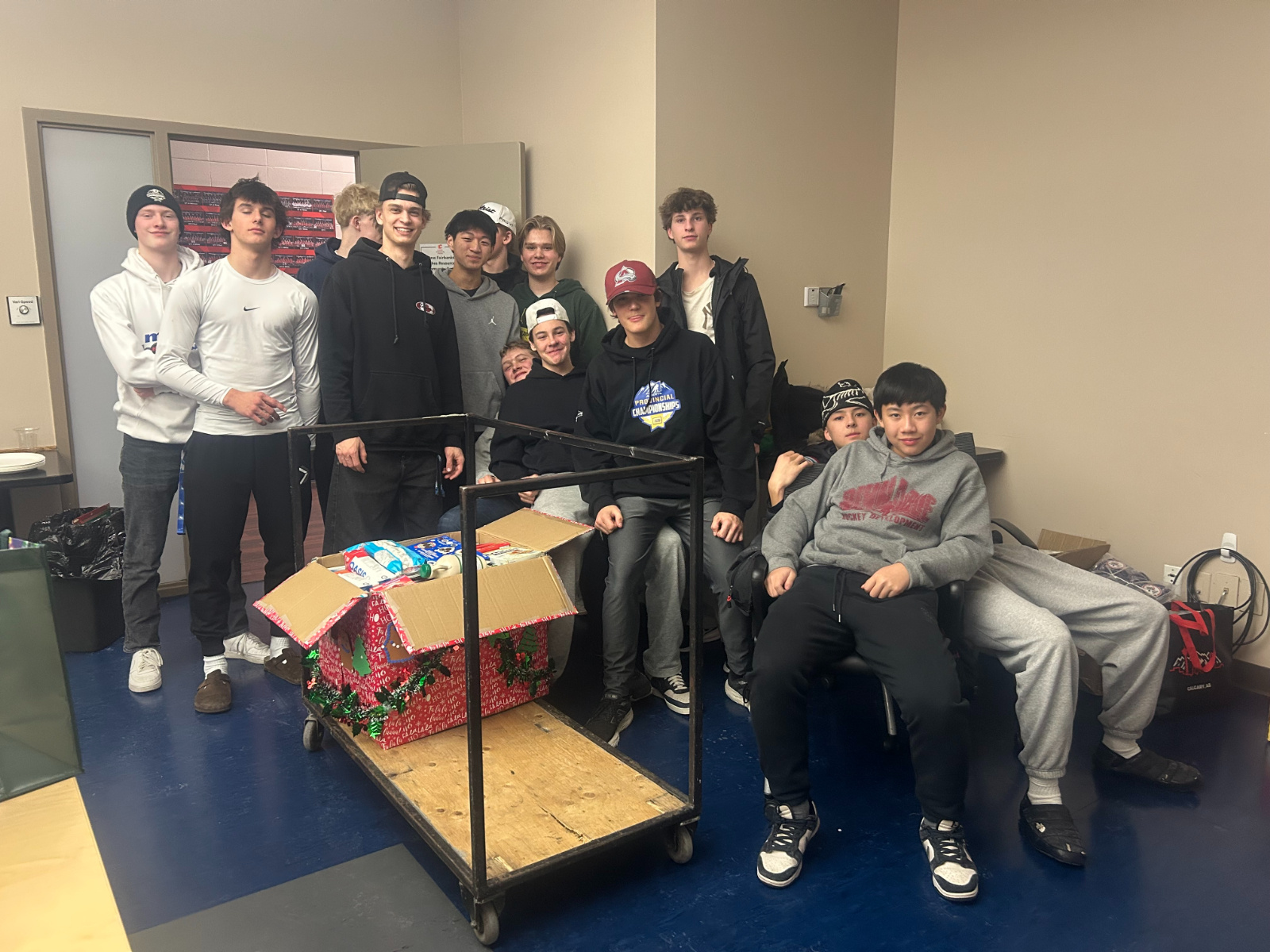 | U18 NBC 1 Red | Our U18 NBC 1 RED team dedicated lots of time off the ice this year to our community. Each player averaged about 6-8 hours of their time volunteering off the ice. Along with players, coaches, and parents, we managed to spend 2 Saturday mornings on the ice with 'TW/GL Try Hockey" program, as well as spending an entire day at the Calgary Food Bank packing hampers for those in need in our greater community. However, the biggest reward, as well as eye opening experience, was volunteering at the Calgary Food Bank. Sometimes, we all take basic needs for granted. These boys left their shift forever changed. |